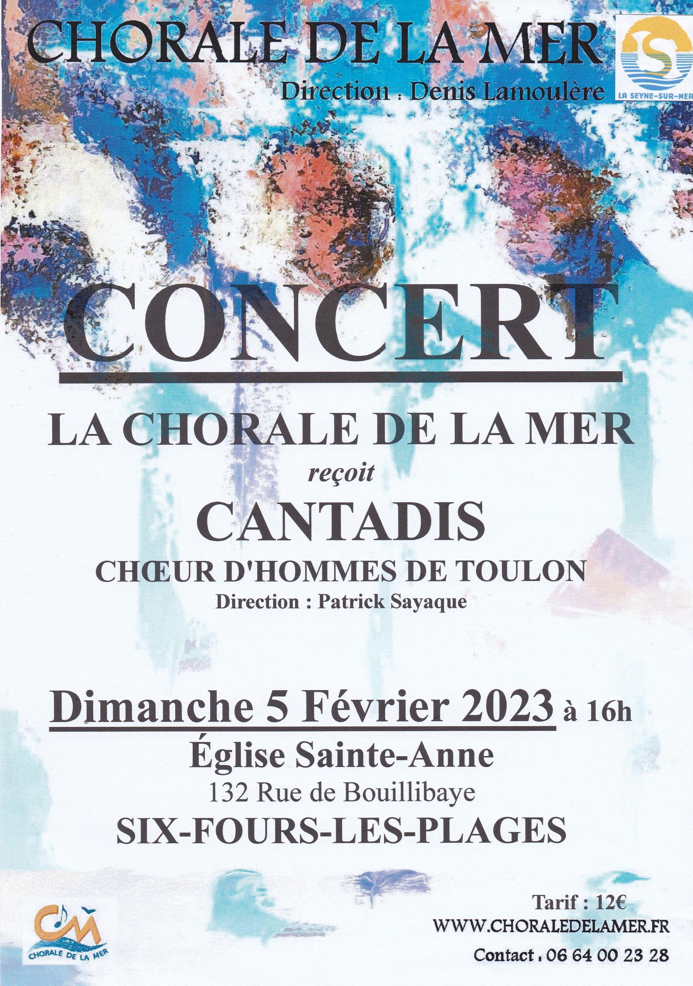 Concert avec le choeur d'hommes Cantadis en l'église Sainte Anne de Six Fours les Plages. |